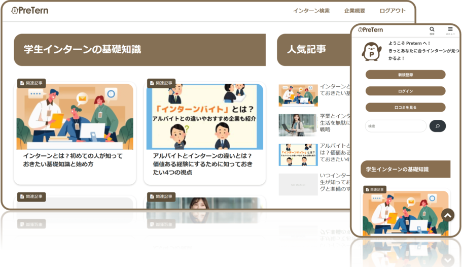 Preternは大学生なら誰でも簡単に先輩のインターン体験談や口コミを読めるサービスです。